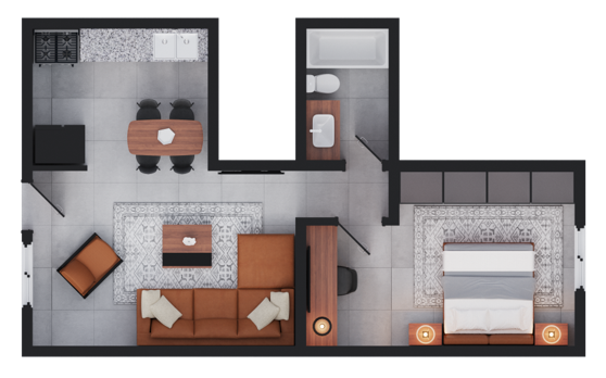 Very popular single bedroom apartments facing onto one of the pool, gym, trees, gardens and bbq area